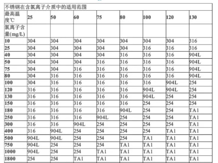 一、幾種不銹鋼在含氯水溶液中的適用條件