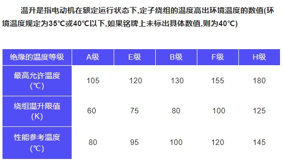 5.絕緣等級:電動機(jī)絕緣材料的等級,決定電機(jī)的允許溫升。