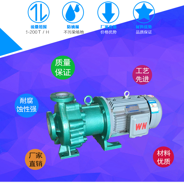 氟塑料磁力泵又稱其為氟塑料磁力離心泵、襯四氟磁力泵、氟塑料磁力驅(qū)動泵、耐腐蝕磁力化工泵,CQB-FJ襯氟磁力泵是我公司氟塑料磁力泵中的全新升級款型。氟塑料磁力泵另有:CQB-
