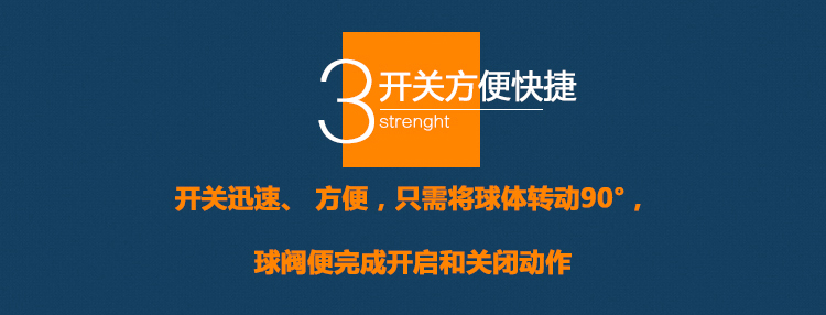 2、開關(guān)迅速、 方便,只需將球體轉(zhuǎn)動90°,球閥便完成開啟和關(guān)閉動作。