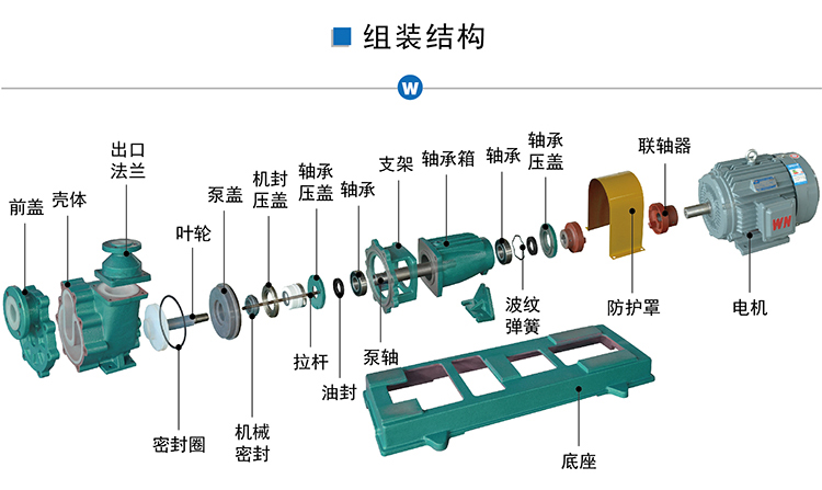 WJZ-F氟塑料自吸泵是屬于非金屬材質(zhì)耐腐蝕自吸泵,是本公司升級(jí)產(chǎn)品,泵體采用金屬外殼內(nèi)襯氟塑料F46,過(guò)流部件全部采用氟塑料合金制造,泵蓋、葉輪等均用金屬嵌件外包氟塑料整體燒結(jié)壓制而成,軸封采用外裝式先進(jìn)的波紋管機(jī)械密封,靜環(huán)選用氧化鋁陶瓷(或碳化硅),動(dòng)環(huán)采用四氟填充材料,其耐腐耐磨密封性很好。泵的進(jìn)出口均采用鑄鋼體加固,以增強(qiáng)了泵的耐壓性。該泵具有耐強(qiáng)腐蝕、耐磨、耐高溫、不老化、機(jī)械強(qiáng)度高、運(yùn)轉(zhuǎn)平穩(wěn)、外殼鑄鋼耐受管道壓力好,殼體不會(huì)開(kāi)裂,結(jié)構(gòu)合理、密封性能可靠、拆卸檢修方便、使用壽命長(zhǎng)等優(yōu)點(diǎn)。