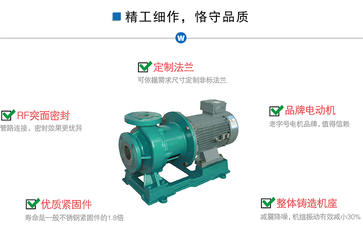 功能上:由于以上的結(jié)構(gòu)設(shè)計(jì),材料配置,CQB-FJ系列磁力泵,可輸送含濃度的腐蝕性液體、高溫強(qiáng)酸強(qiáng)堿等。
