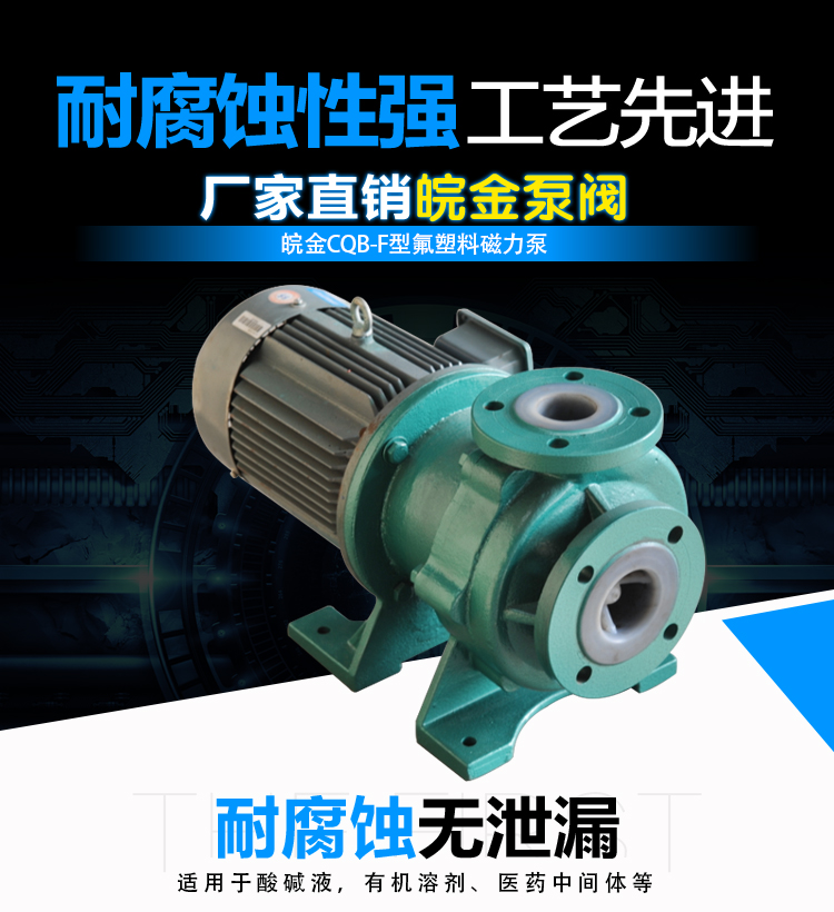 氟塑料磁力泵又稱其為氟塑料磁力離心泵、襯四氟磁力泵、氟塑料磁力驅(qū)動(dòng)泵、耐腐蝕磁力化工泵,CQB-FJ襯氟磁力泵是我公司氟塑料磁力泵中的全新升級(jí)款型。氟塑料磁力泵另有:CQB-