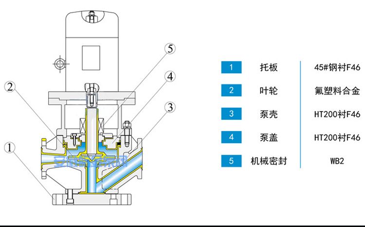 ?IHF-J氟塑料離心泵又稱其為塑料合金離心泵、襯氟離心泵、耐腐蝕離心泵,IHF氟塑料離心泵長支架型和短支架型。氟塑料離心泵另有:IHF-D短支架型、FSB-J長支架型、FSB-D短支架型、GDF立式管道離心泵、FZB氟塑料自吸泵。? ?