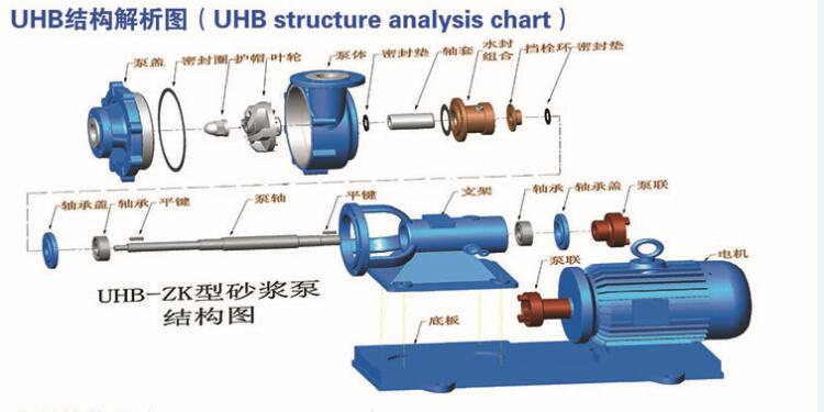 UHB-ZK型系列砂漿泵又稱脫硫泵、壓濾機(jī)泵,屬于懸臂式單級(jí)單吸離心泵,是輸送含有細(xì)顆粒的腐蝕性介質(zhì)的,其過(guò)流部件采用鋼襯超高分子量聚乙烯制造,具有較強(qiáng)的耐腐蝕性、卓越的耐磨性、抗蠕變性(耐環(huán)境應(yīng)力開裂),同時(shí)采用金屬基體結(jié)構(gòu),提高了產(chǎn)品承壓能力。