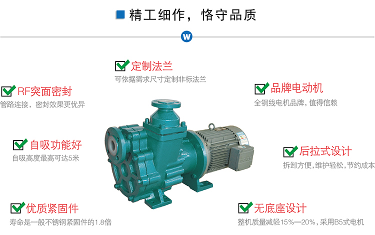 氟塑料磁力泵又稱其為氟塑料磁力離心泵、襯四氟磁力泵、氟塑料磁力驅(qū)動(dòng)泵、耐腐蝕磁力化工泵,CQB-FJ襯氟磁力泵是我公司氟塑料磁力泵中的全新升級(jí)款型。氟塑料磁力泵另有:CQB-