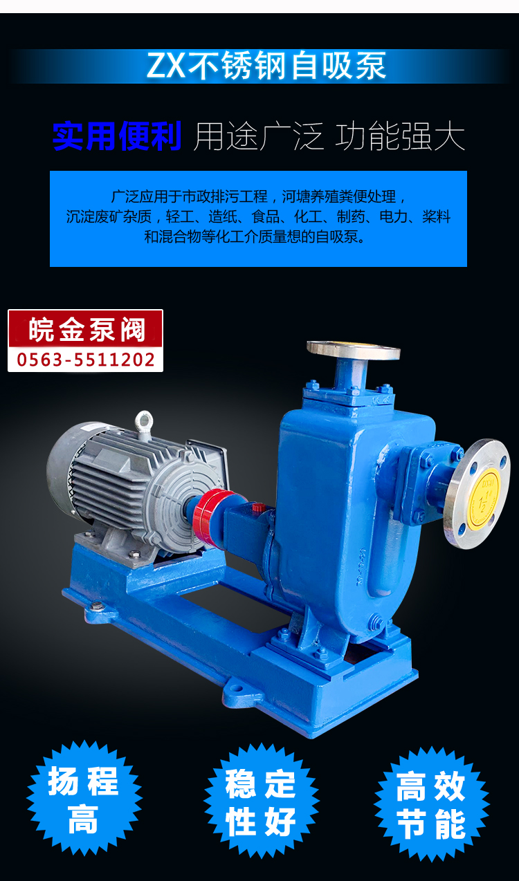 ZX自吸泵與同類產(chǎn)品相比,具有結構簡單,自吸性能好,(自吸高度可達5m),排污能力強,高效節(jié)能,維修方便(可替代WQ、QW潛污泵)等特點, 廣泛應用于市政排污工程,河塘養(yǎng)殖糞便處理,沉淀廢礦雜質(zhì),輕工、造紙、化工、制藥、電力、槳料和混合物等化工介質(zhì)量的自吸泵。