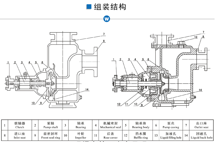 3、自吸性能好:自吸高度比一般自吸泵高1米,且自吸時間比普通自吸泵短。